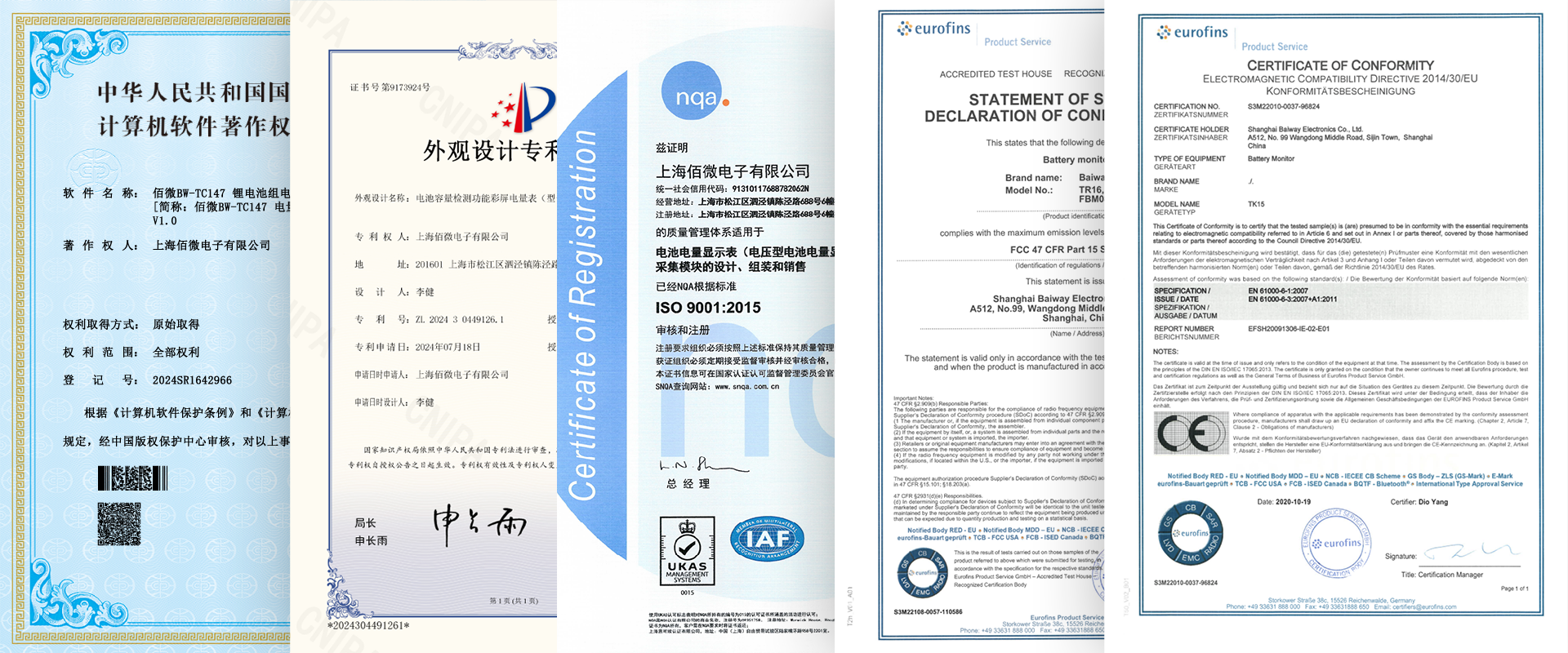上海佰微电子成立于2009年,是行业内领先的专业电池电量显示器制造商,拥有16年行业经验。公司集研发、生产、销售于一体,提供包括库仑计在内的多种电量显示产品,可实时监测电池的电流、电压、容量等状态。产品广泛应用于房车、游艇、工程车辆等应用场景,并以高精度采样、高可靠性著称,已获得30多个专利证书并通过ISO9001、CE、RoHS、FCC等国际认证。